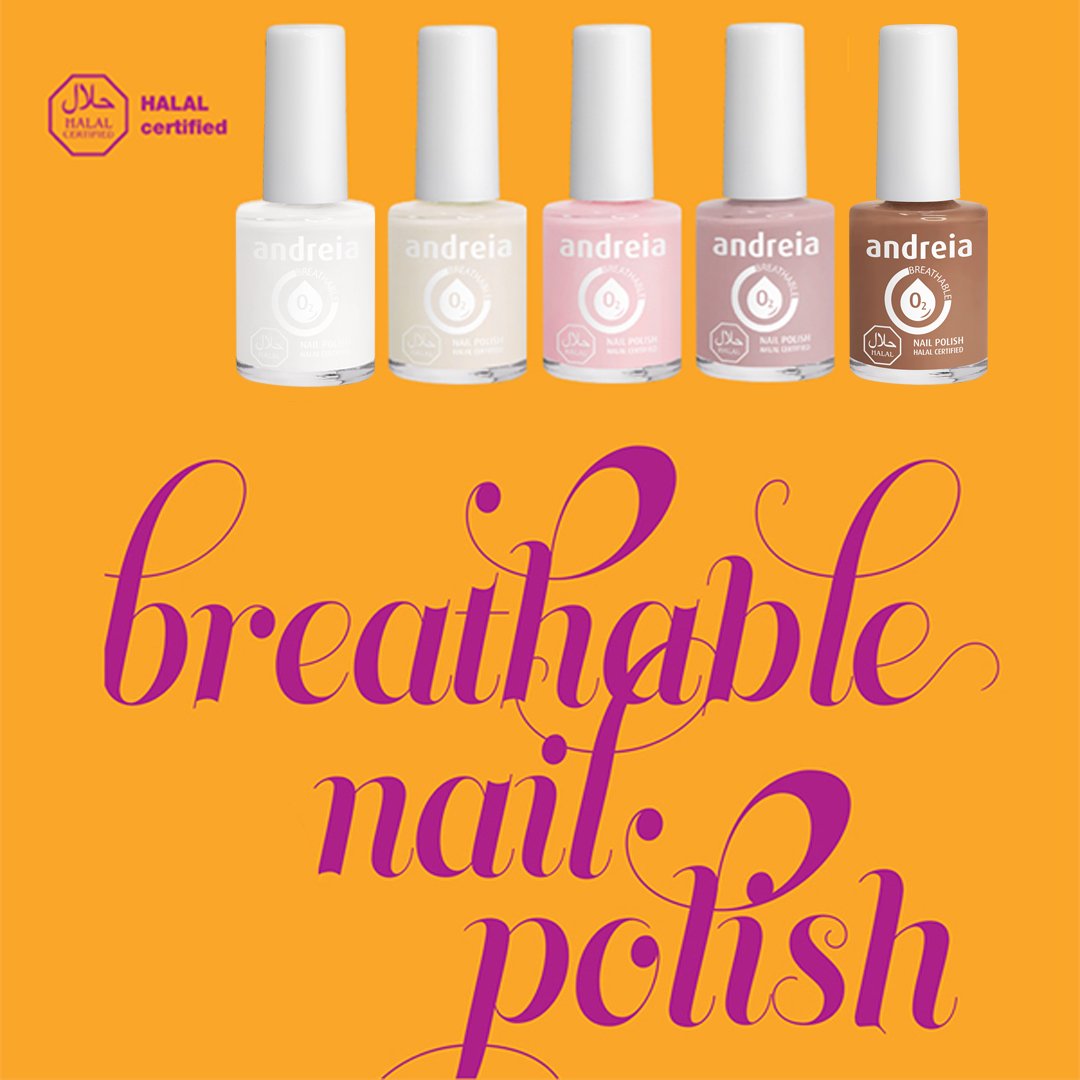 For best results, apply Andreia’s Breathable Base and allow to dry, then apply 2 coats of colour and then finish with Andreia’s Breathable Top Coat.