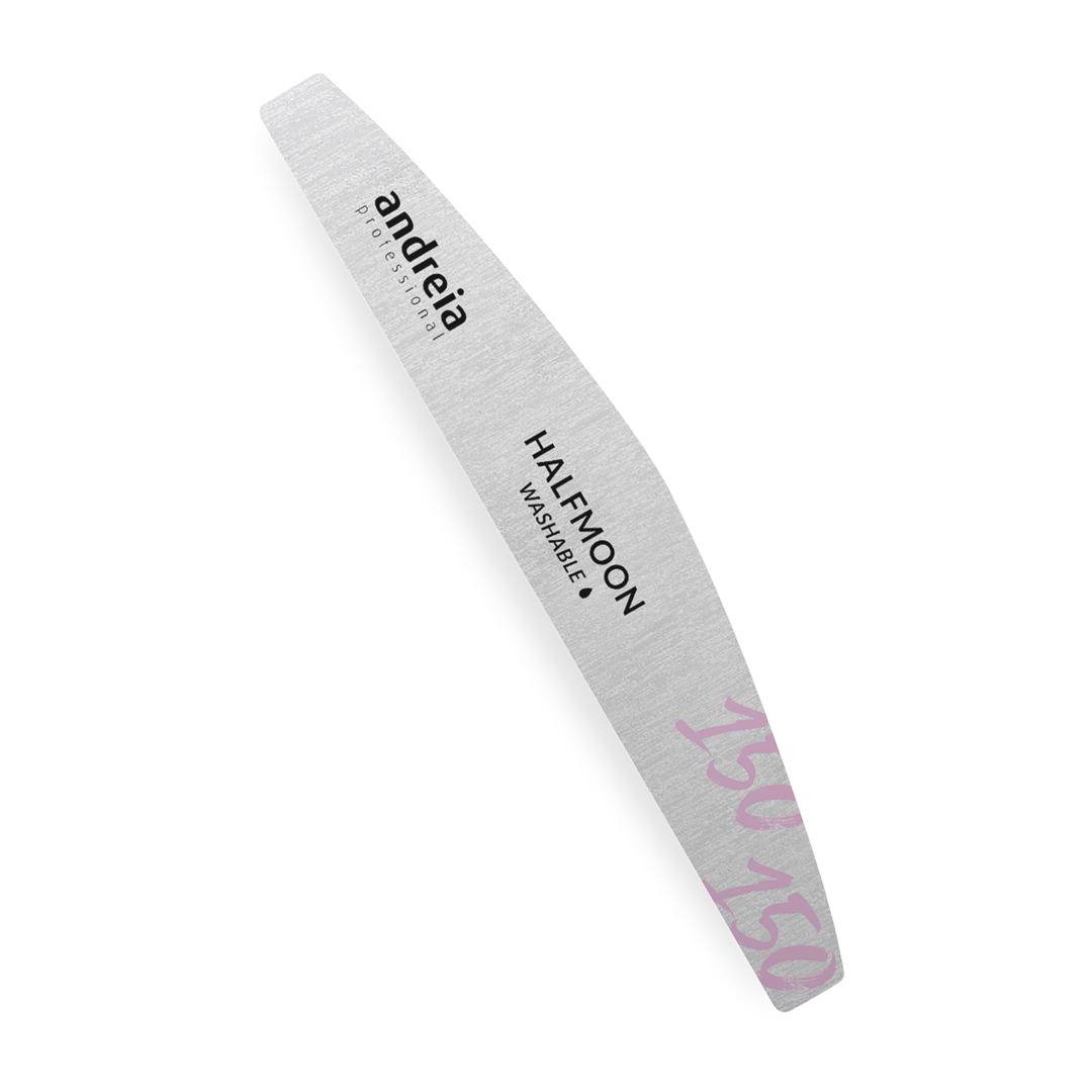 An ergonomic half-moon shaped File, designed to make it easier to file the side walls and cuticle area of the nail.
