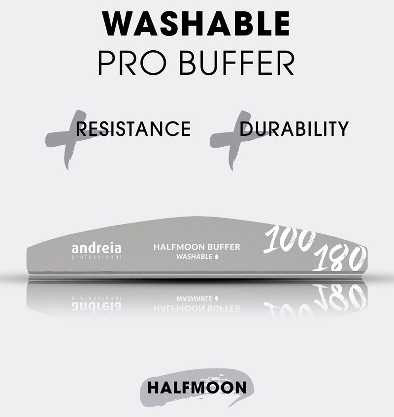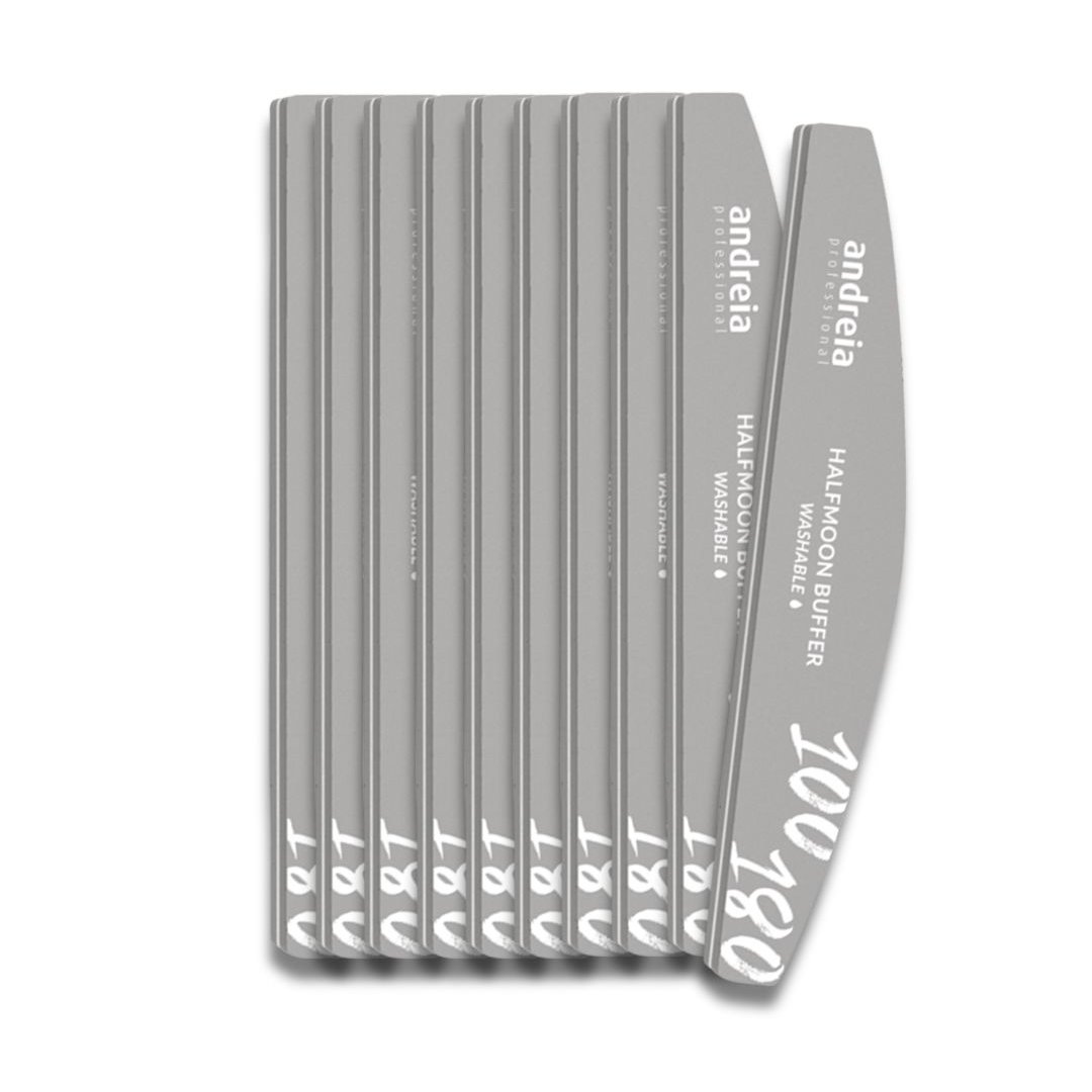 Ergonomic half moon shape and 100/180 weight to eliminate irregularities and even out the nail.