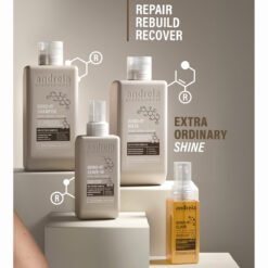 Composed of three essential products — Shampoo, Mask, and Leave-In — this range ensures complete reparative action, from cleansing to the final touch. It also offers an extraordinary Elixir for added shine and hair care.