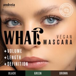 Andreia Professional WHAT? Mascara has been formulated for intense nourishment that strengthens your lashes! not only that it adds MORE VOLUME, MORE DEFINITION, and MORE LENGTH!
